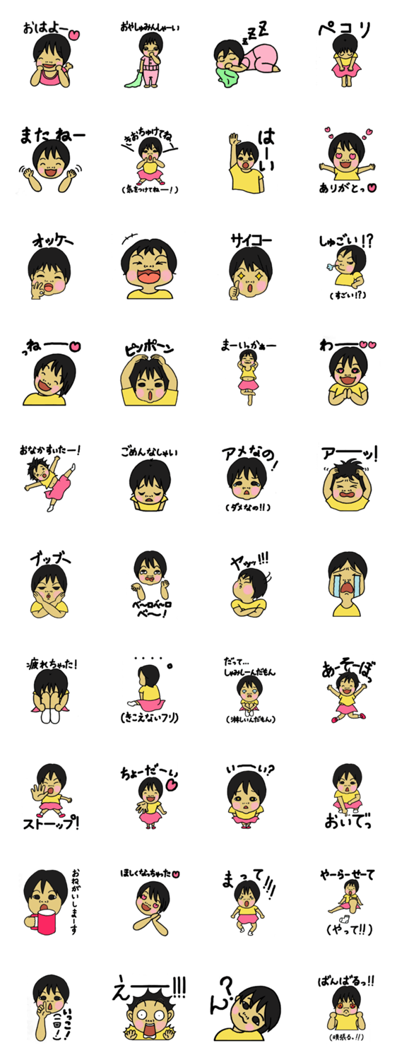 3歳の娘がする、幼児特有の言い回しや仕草をそのままスタンプに。