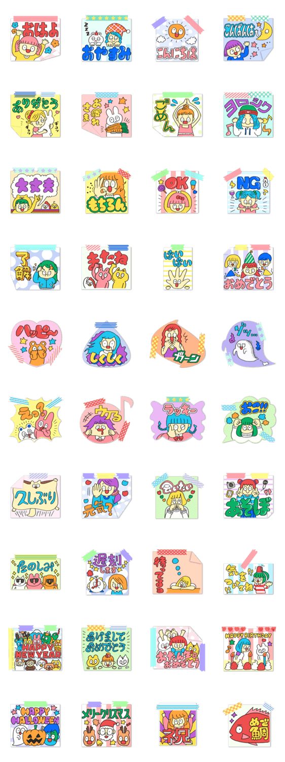 メモ風なスタンプ!トーク画面にマステでペタッと貼ってるように見えるスタンプです。