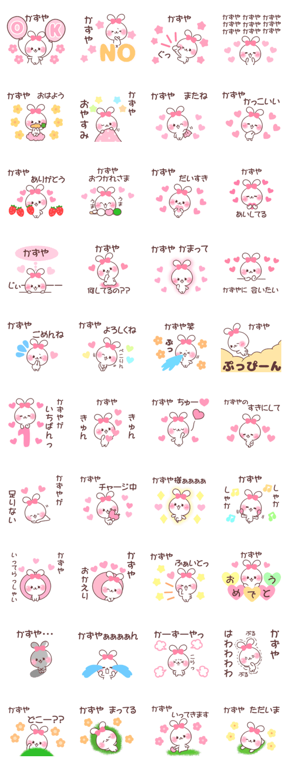 大切なかずやくん/ちゃんへ送るかわいいゆるいうさぎ名前あだ名スタンプ♡彼氏彼女ラブラブ恋愛カップル友達家族夫婦が使う♡
