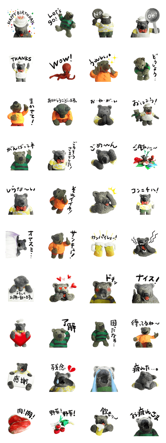 | スタンプ説明 | 横浜日吉にあるbearsgrillの看板グマ。 ビールと肉と魚が大好きなお父さんグマです。 かわいい小ぐまの兄弟もいるよ!よろしくね。 |