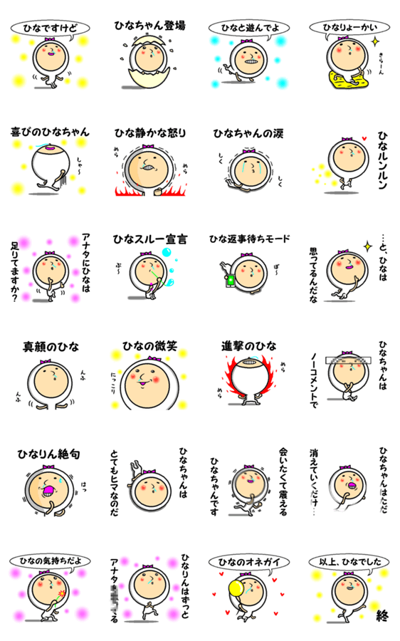 全国のひなさんが使えるひな専用スタンプ。ひなこさん・ひなみさん・ひなたさん・ひなのさん・雛形さんにオススメ。他の名前や名字・ニックネームスタンプも展開中