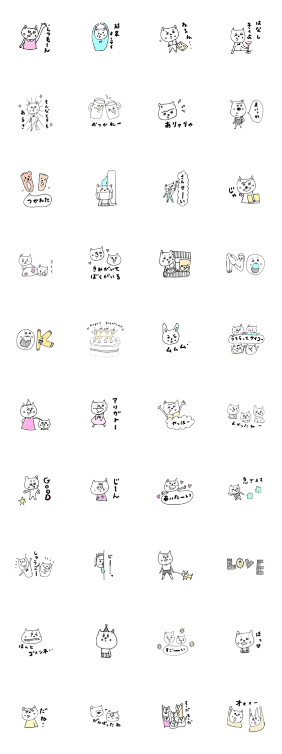 白ネコのあいうえお・・・ってるスタンプ