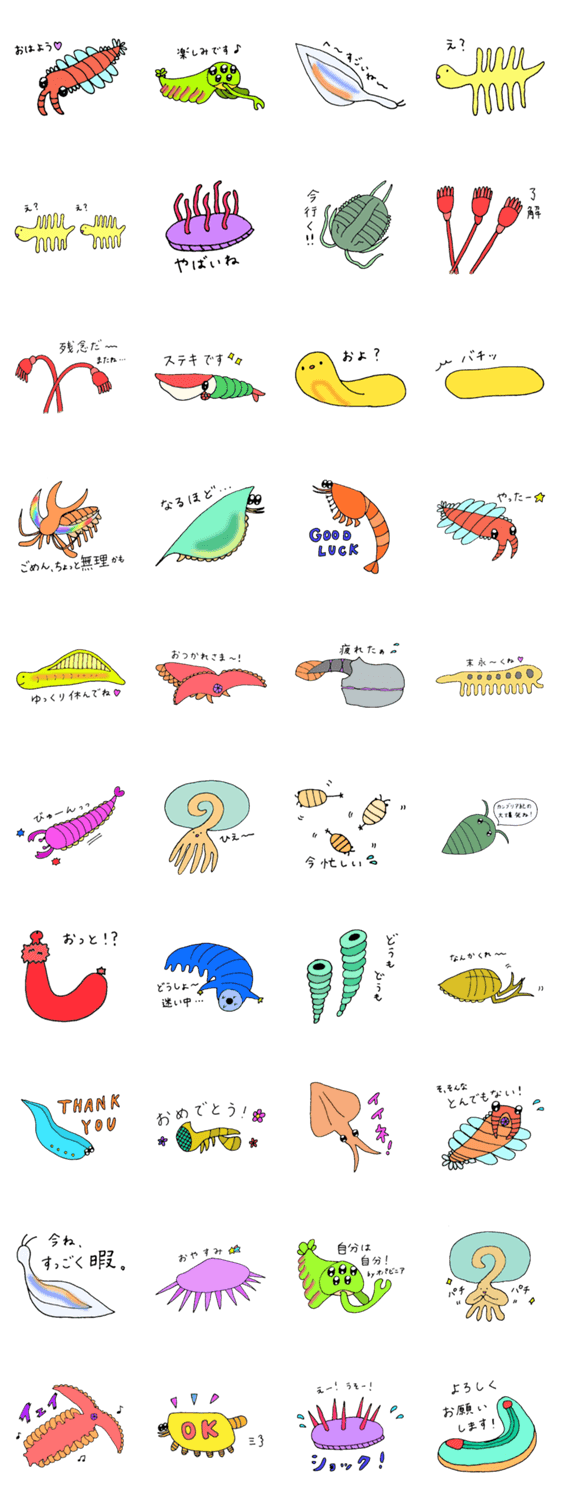 カンブリア紀の生物をスタンプにしました。ゆるい感じのきもかわスタンプです。
