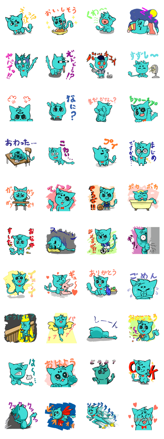 | スタンプ説明 | 太眉で憎めない猫のにゃんブルー!野球やバスケ、サッカーといったスポーツが得意なお調子者ネコちゃんです。おもしろい可愛いねこキャラに癒やされよう!creator:めのまた |