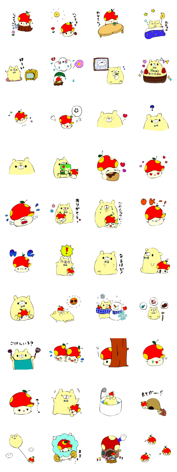 りんごモチーフきのことくまのほのぼのスタンプです。
