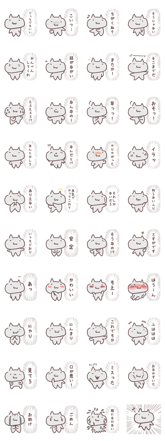 白ネコのあいうえお・・・ってるスタンプ