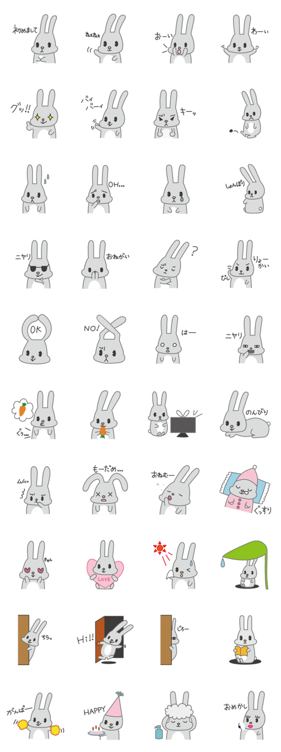 ゆるかわいいウサギのスタンプ。日常会話にぜひ。