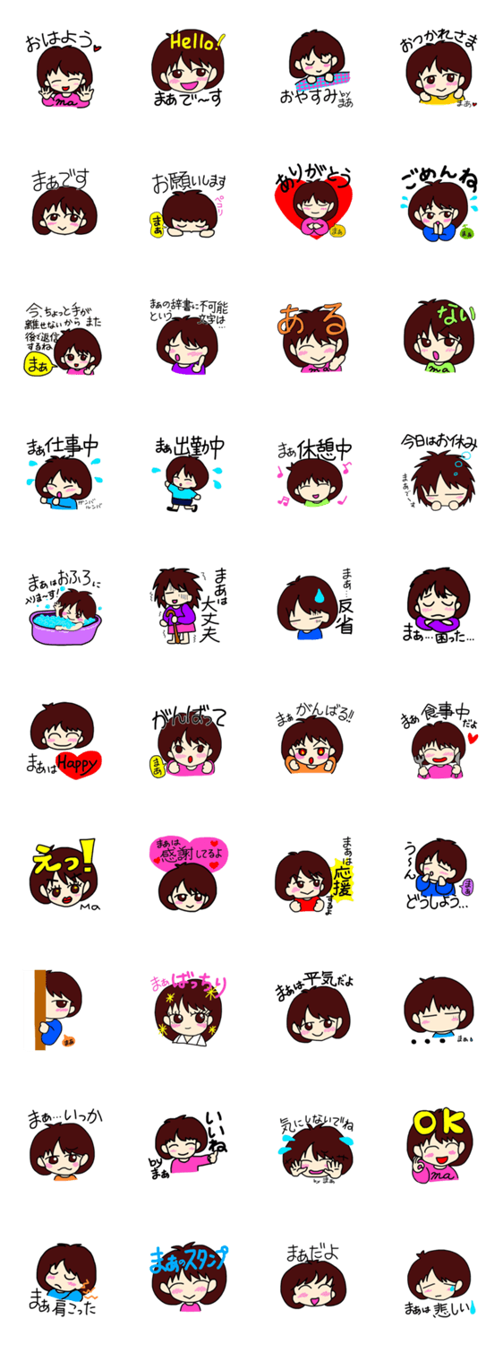 友達のまぁさんが自分のために作ったスタンプです。 まいさん、まさこさん、まりなさんなど名前にまが付く人は使ってみてください! 可愛いスタンプで日常的にも使えます。