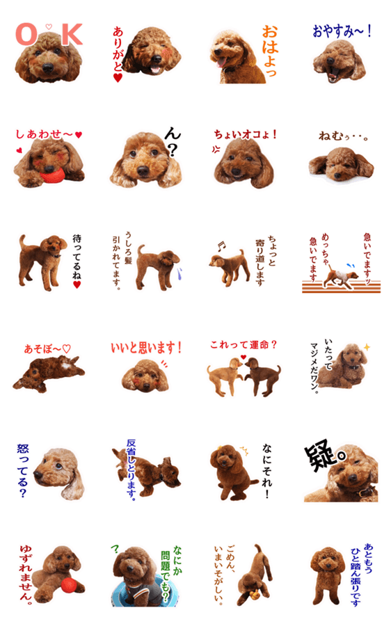 | スタンプ説明 | トイプードルのハルキチが表情豊かにあなたの気持ちを代弁します。 |