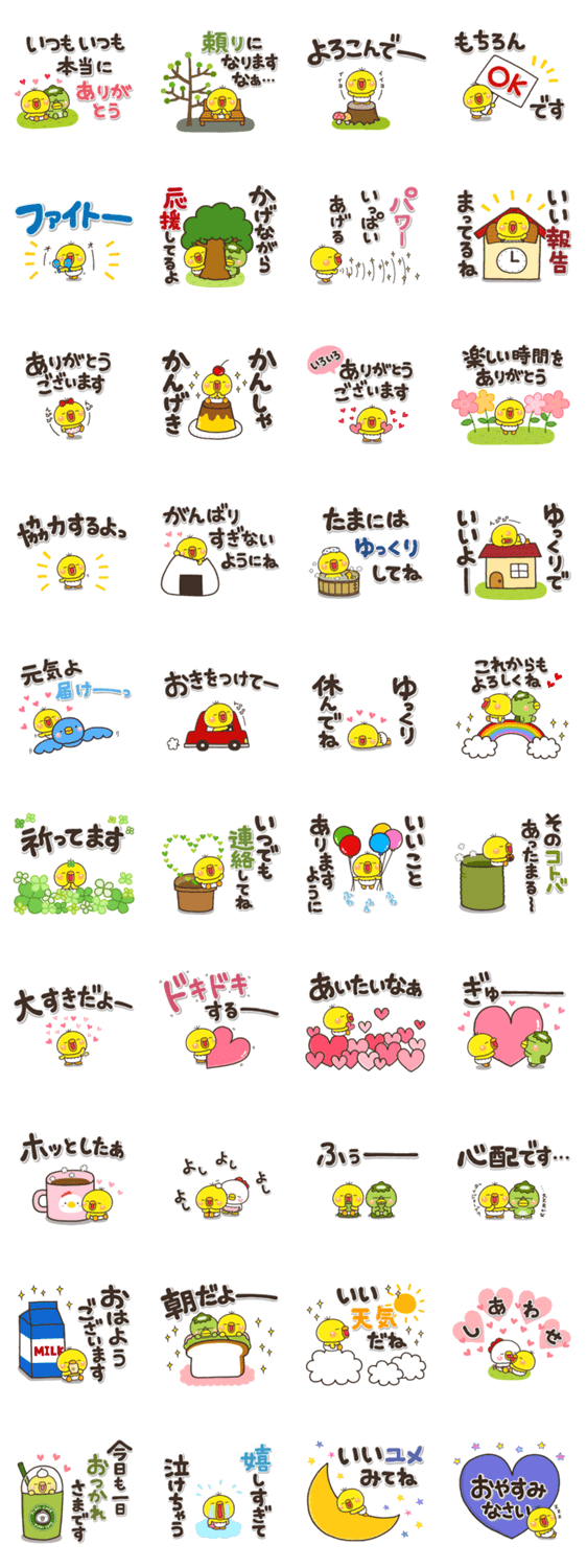 ヒヨコのぴっぴです。やさしい気持ちをスタンプにしました。おともだちのかっぱさんも一緒です。【作:いしいともこ】