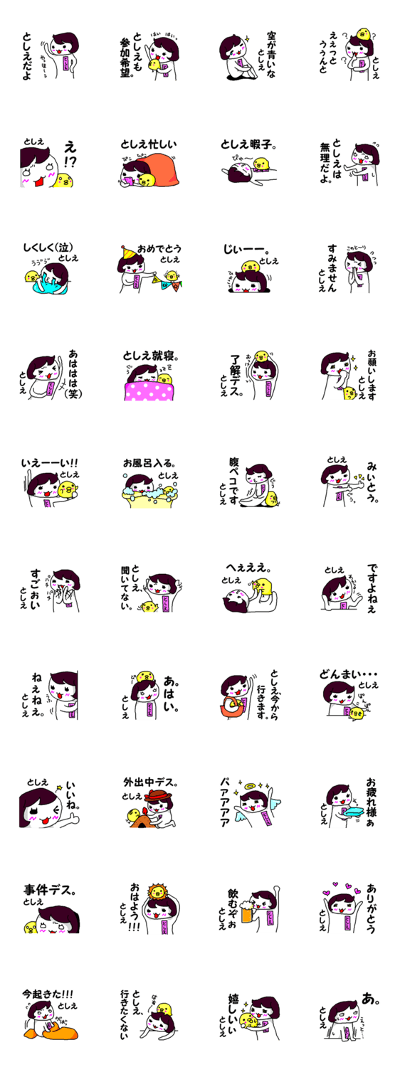 まったりしたトシエさんの生活をスタンプにしました。としえちゃんトシエさんに使っていただきたいです。