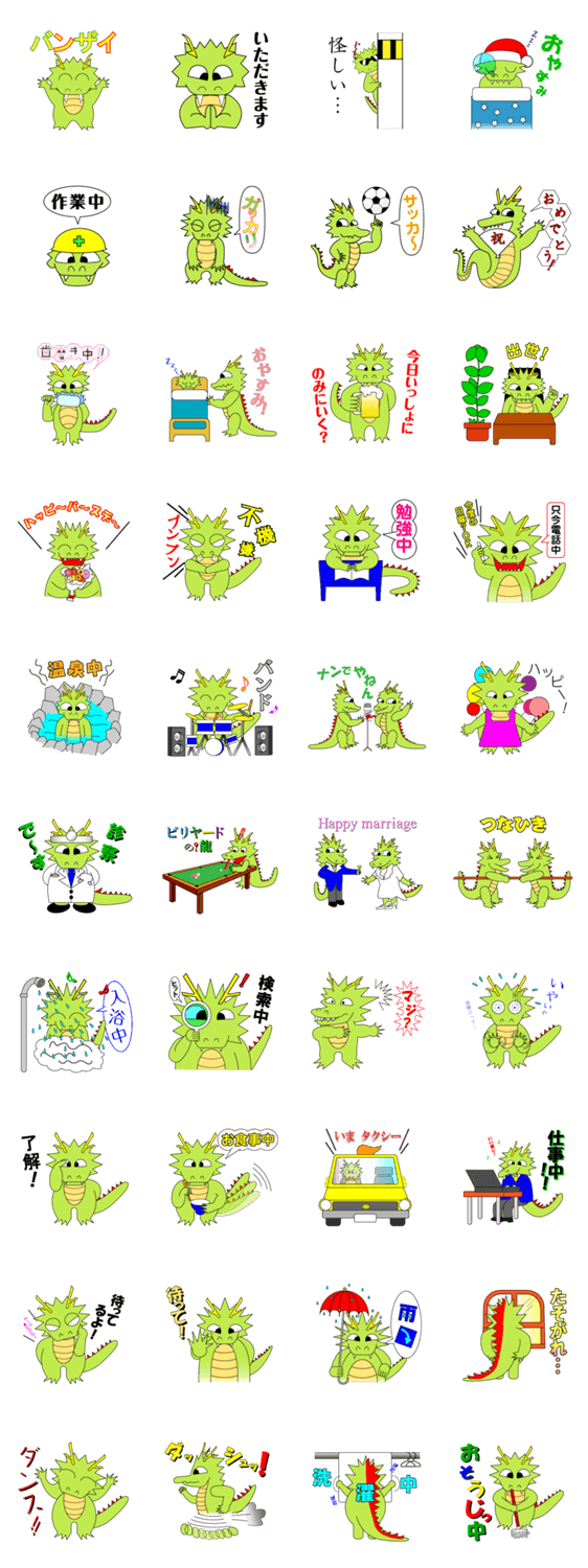 POPなドラゴンの可愛いスタンプです。様々なシチュエーションで使えます★