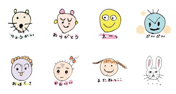 絵心無しの絵心梨さんが作った初めてのスタンプ。学生時代、美術は三年間「1」でした。。。60代主婦