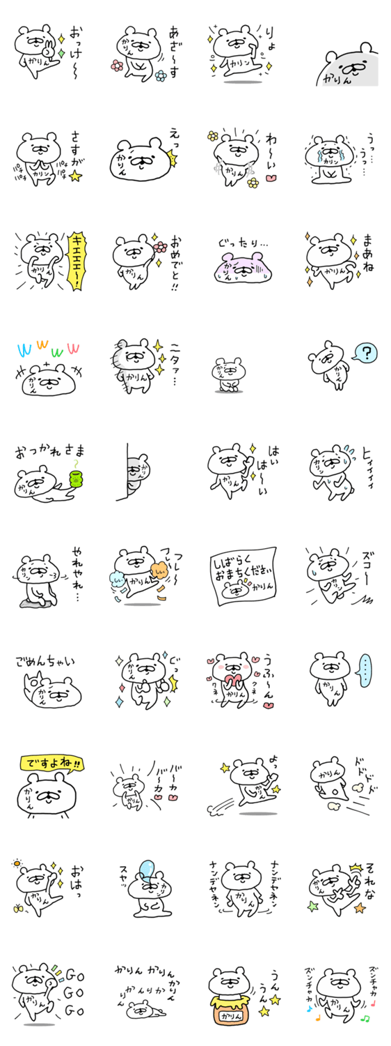 かりんちゃん、かりんくん専用のゆるい名前スタンプくま。花梨、可鈴、夏鈴、果林、加林など、全国のカリンさんへ。【40個セット】