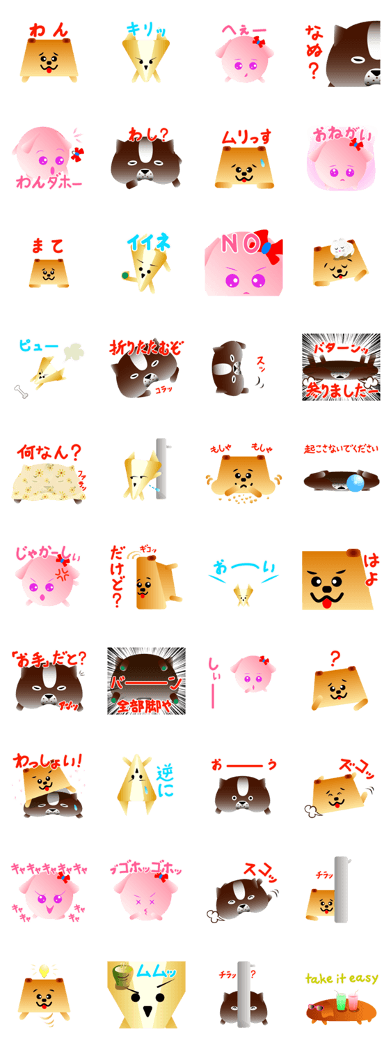 かわいい犬とテーブルの奇跡の合体!言いづらいこともこのスタンプなら楽しく伝えられます。送られても楽しい、思わず笑えるテーブル犬たちを自由に組み合わせて使おう!