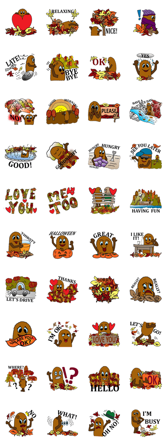 | スタンプ説明 | Sundayくんの秋バージョンが出来たよ(^^)秋色Sundayくんをあなたの友達に送って いっぱい楽しんでね |