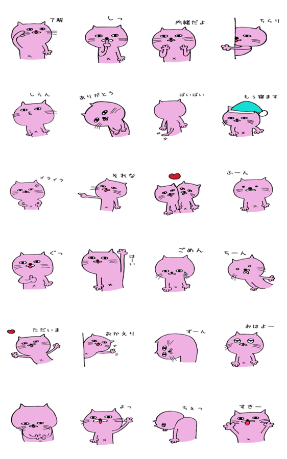 無表情なのにゆるくてかわいいピンクの猫「にゃん助」