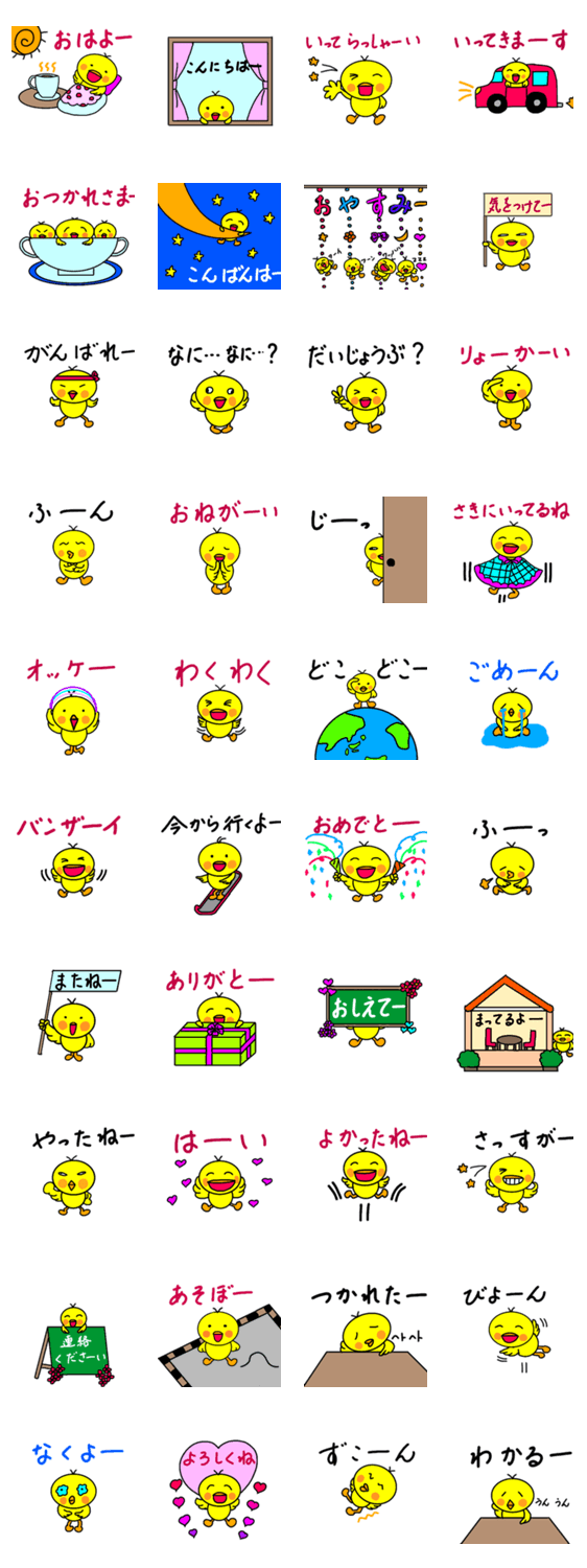 ひよこのひーちゃんです。友達との会話が盛り上がるような楽しい言葉にしてみました。是非使って下さいね。