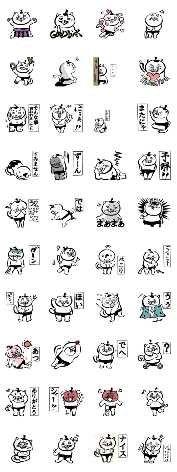 力士ねこ 筆で書いた風 シール風 -LINEスタンプマニア
