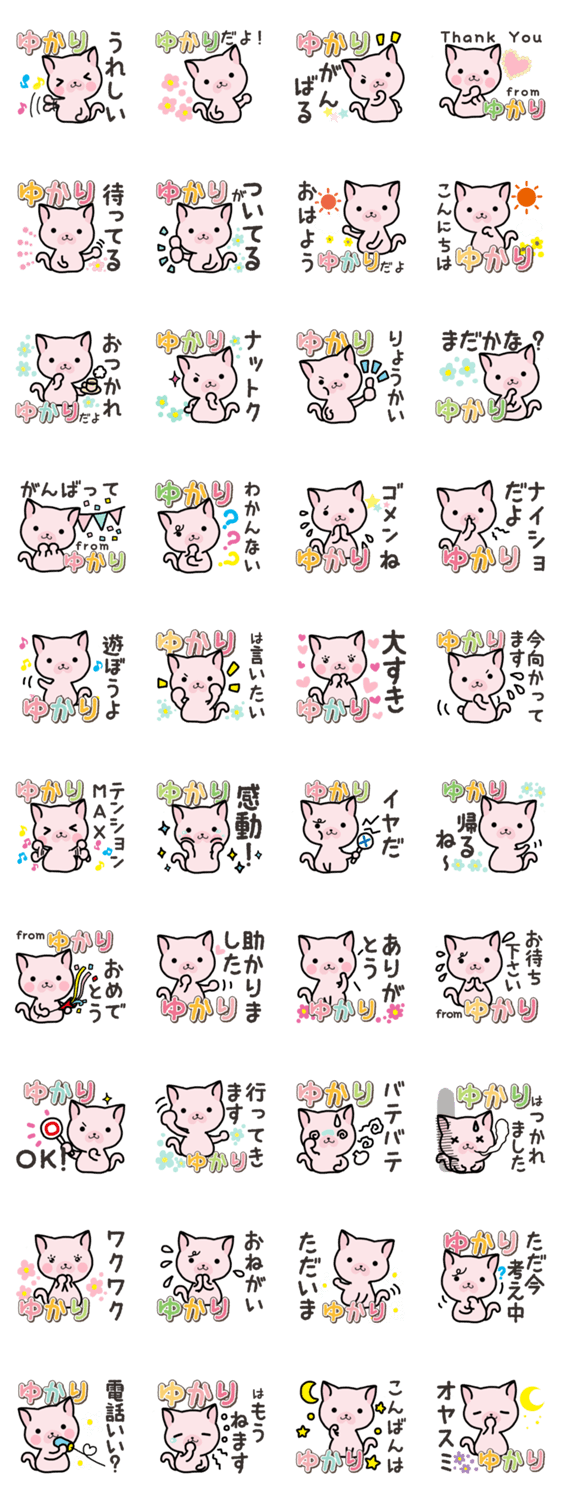 みんな大好きハムとねこがひとつになった、ほんわか名前スタンプ、ハムねこです。今回はすべてのゆかりさん用に作りました。ゆかりさんへのプレゼントにもどうぞ。
