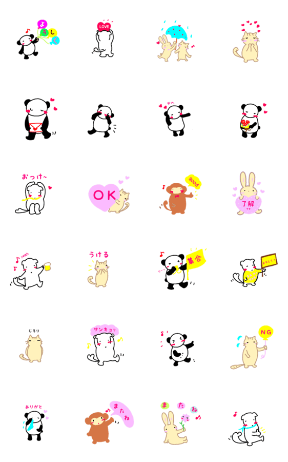 動物のらぶりーなスタンプです 犬、猫、パンダ、猿、うさぎ