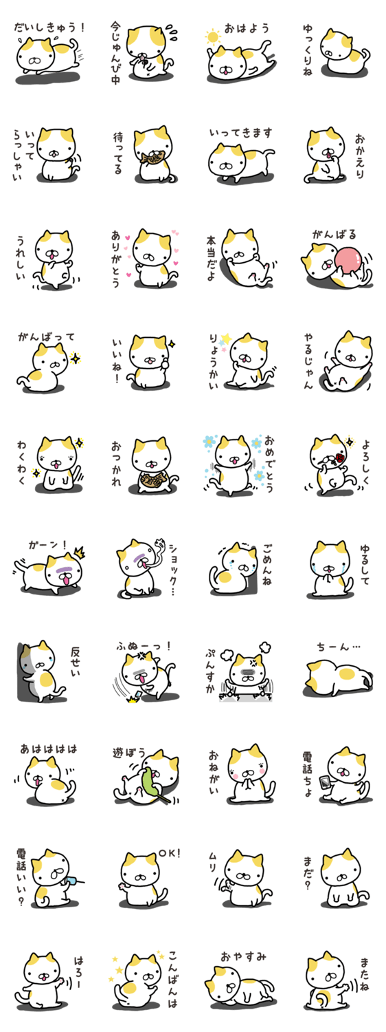 ひらめ顔のねこさんが、LINEスタンプになって、あなたの日常会話を楽しく可愛く彩ることができるよう、頑張ってメッセージを届けます。