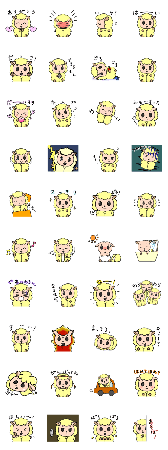 かわいい赤ちゃんひつじの日常会話&感情スタンプです。子どもの気持ちの代弁に使えるほか、甘えたい気分の時にも便利です。