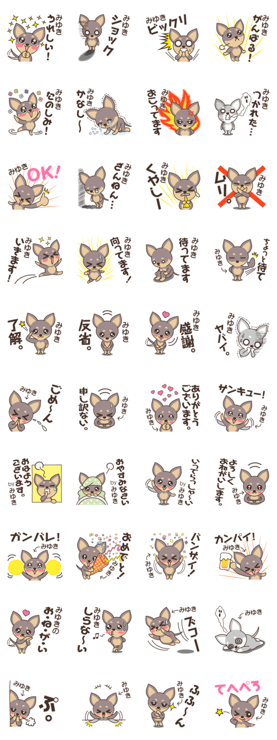 全世界の「みゆき」さん専用名前(なまえ)スタンプ!ミニピン(?)なつもりのかわいいイヌです。ちょっとドジっこ?