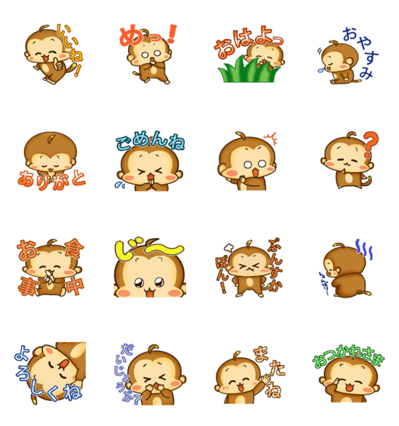 まったり、もちもち、にこにこの、小猿のもんじちゃんスタンプ。日常版です!