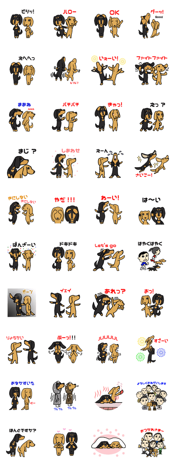 | スタンプ説明 | 2匹のダックスフンドと楽しい仲間たちのスタンプ2です。 |