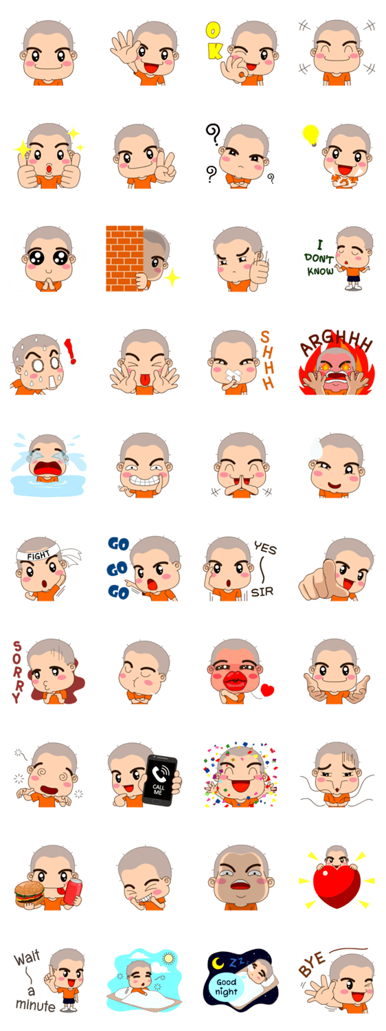 | スタンプ説明 | Let's funny while chatting with this little skinhead boy, who will make you amuse with his naughty characters. |