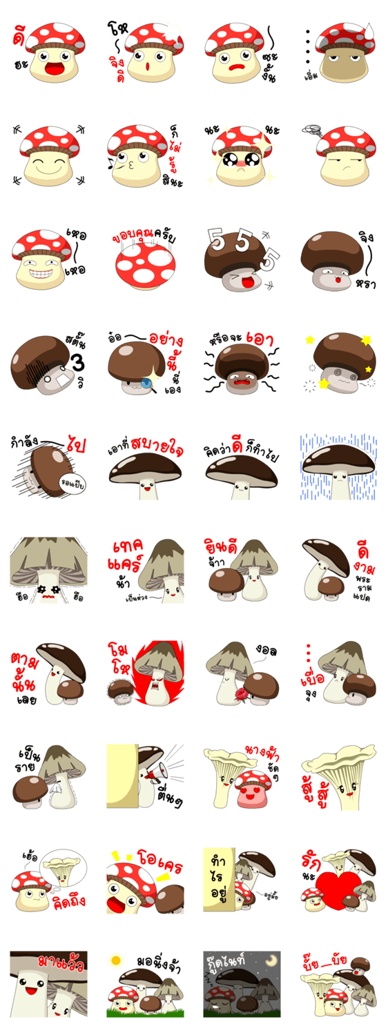 | スタンプ説明 | Hi! Everybody, this is my gang which known as "mushroom gang". Let's fun and laugh with my friends while chatting. |
