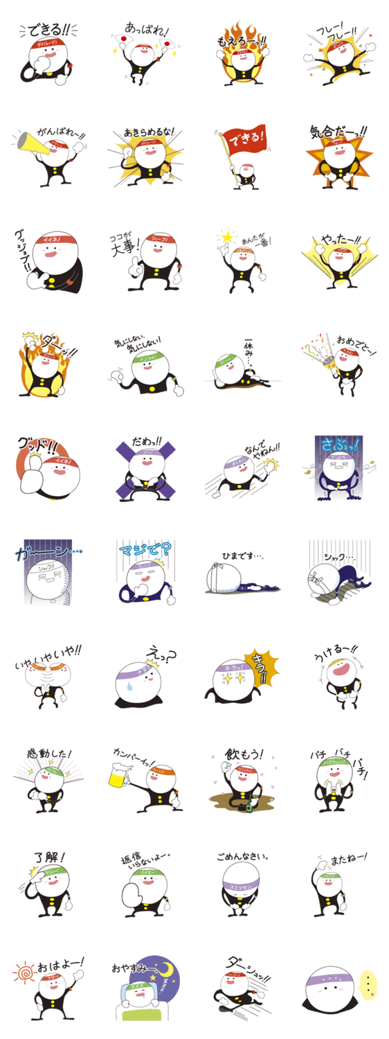 頑張っている人を応援する応援団長、 ガンバ郎のスタンプです。