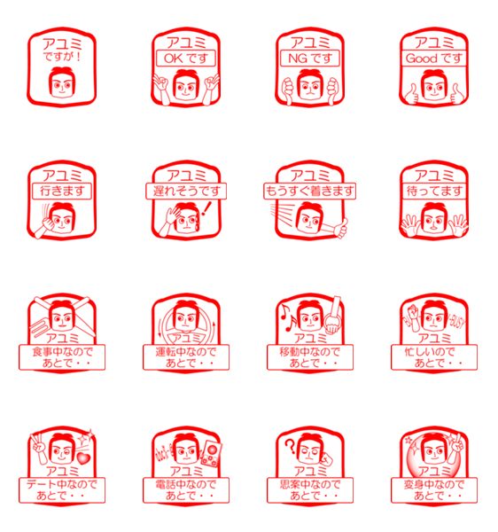 すぐに返信できない時などにも使える、観光地の記念スタンプを押したような呼び名入りスタンプ