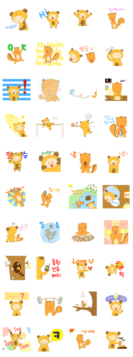 | スタンプ説明 | A boy with a bear clothes and a flying squirrel are here! |