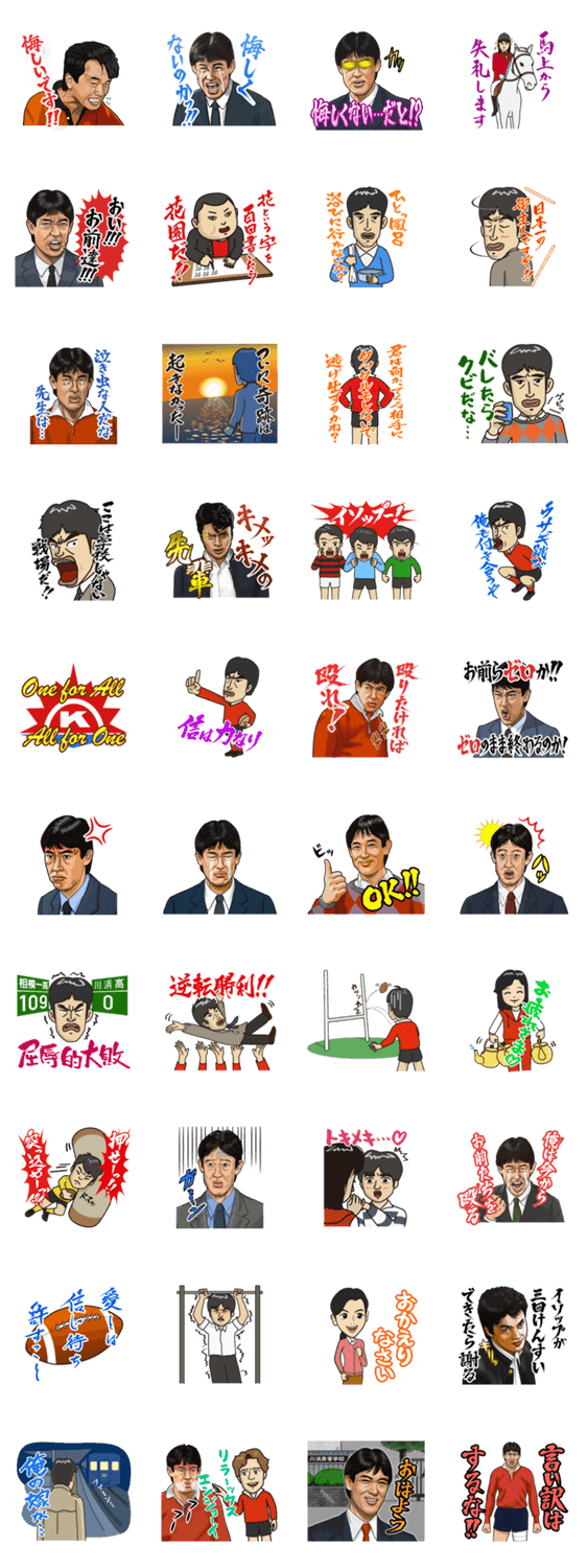 80年代誰もが涙した奇跡の物語、ドラマ『スクール☆ウォーズ』の世界がスタンプで復活!!ドラマを知らない世代でも楽しめる、「悔しいです!」をはじめ、熱い台詞が満載!
