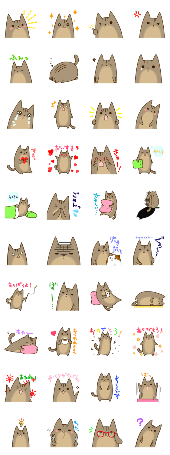 少ししっぽの短いキジトラさんのスタンプです。 いろんな表情をつめこみました♪