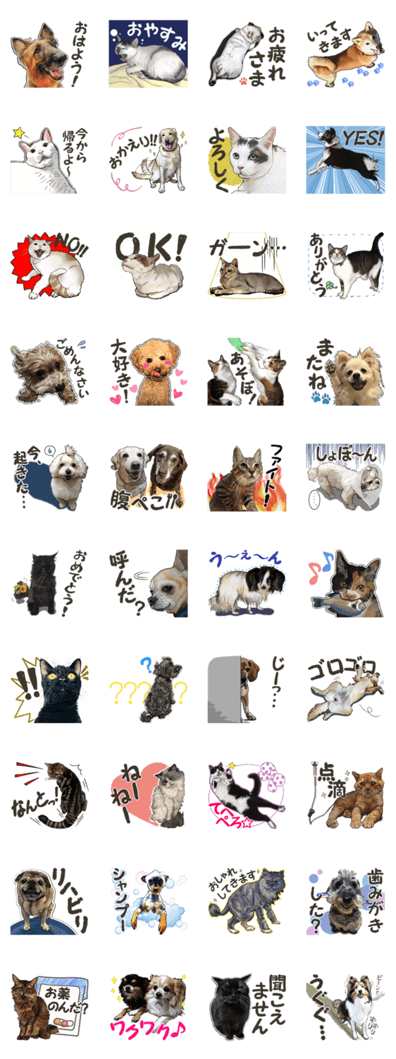 | スタンプ説明 | ぬのかわスタッフの愛犬愛猫がモデルのスタンプです。ペットは飼い主に似る…??誰が飼い主かわかりますか^^? |