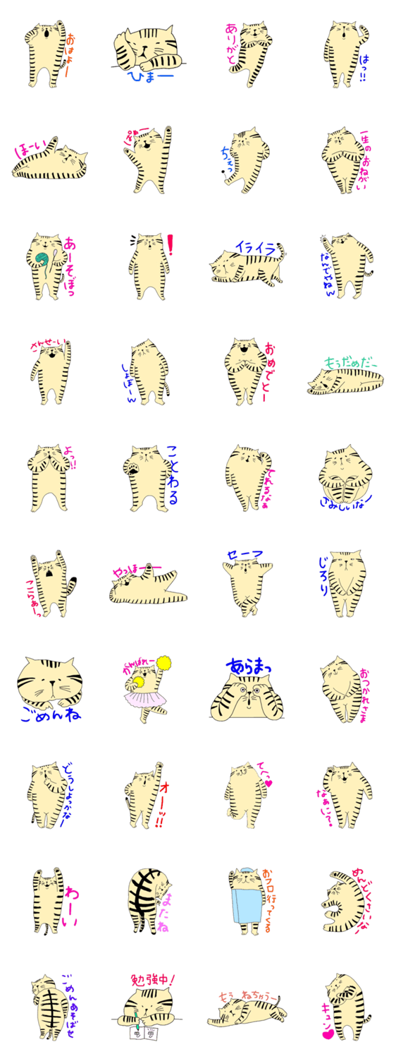 かわいいトラ猫ちゃんの日常会話にぴったりなスタンプです。