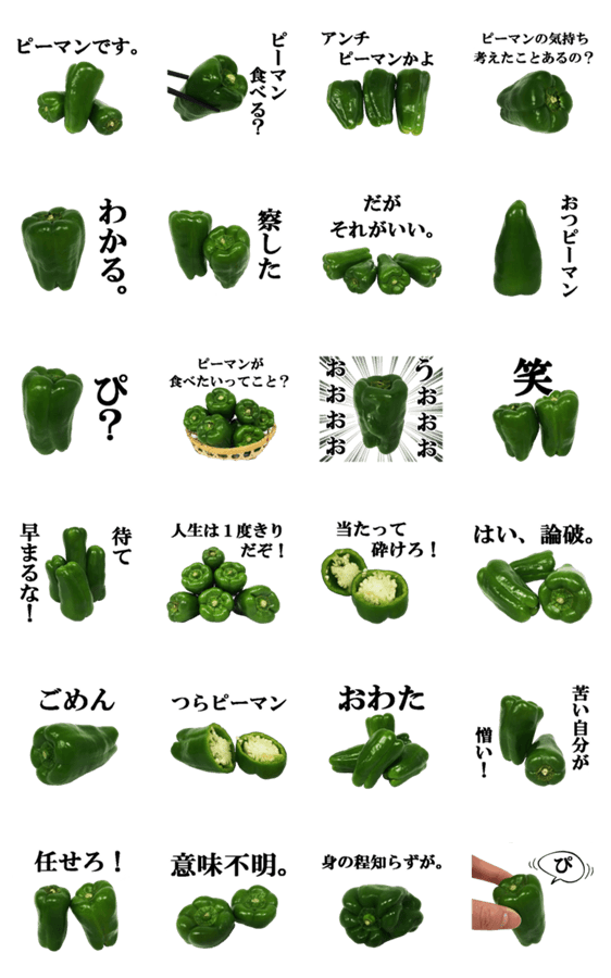 まさかのピーマンの第4弾!ピーマンスタンプ少しうざくて、可愛くて愛嬌があるよね?