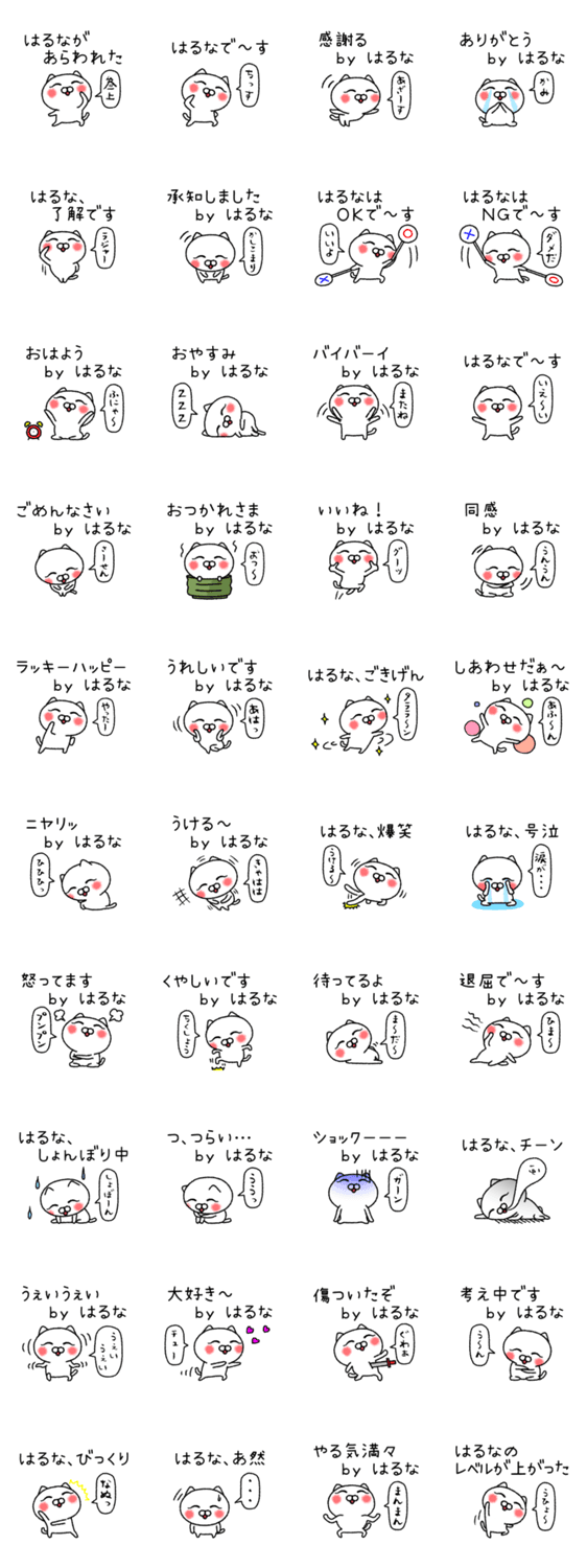 春奈、榛名、春菜、陽菜、遥菜…、全国の「ハルナ」さん専用の猫キャラ名前スタンプです。日常会話の基本セットです。「ちゃんねこシリーズ」です。