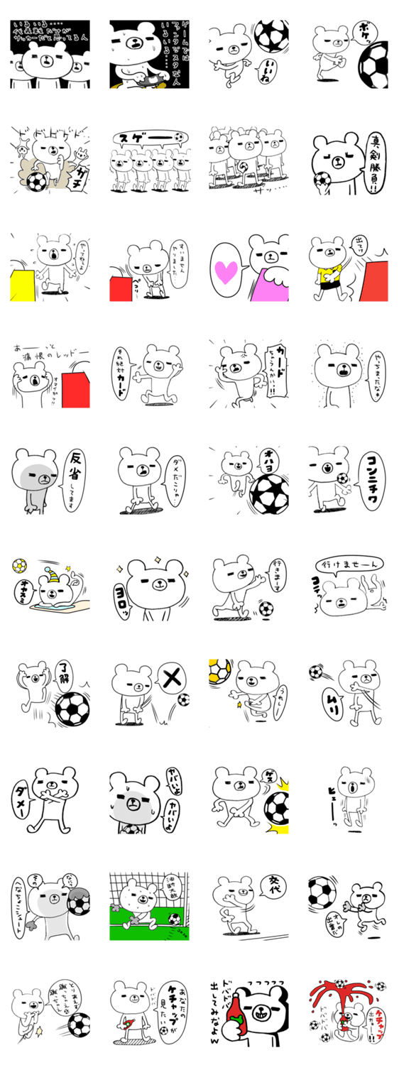 サッカー好きなゆるいクマさんが使いやすいスタンプになりました。日常会話やビジネスにもどうぞ。サッカー好きの人にすごく喜ばれます!