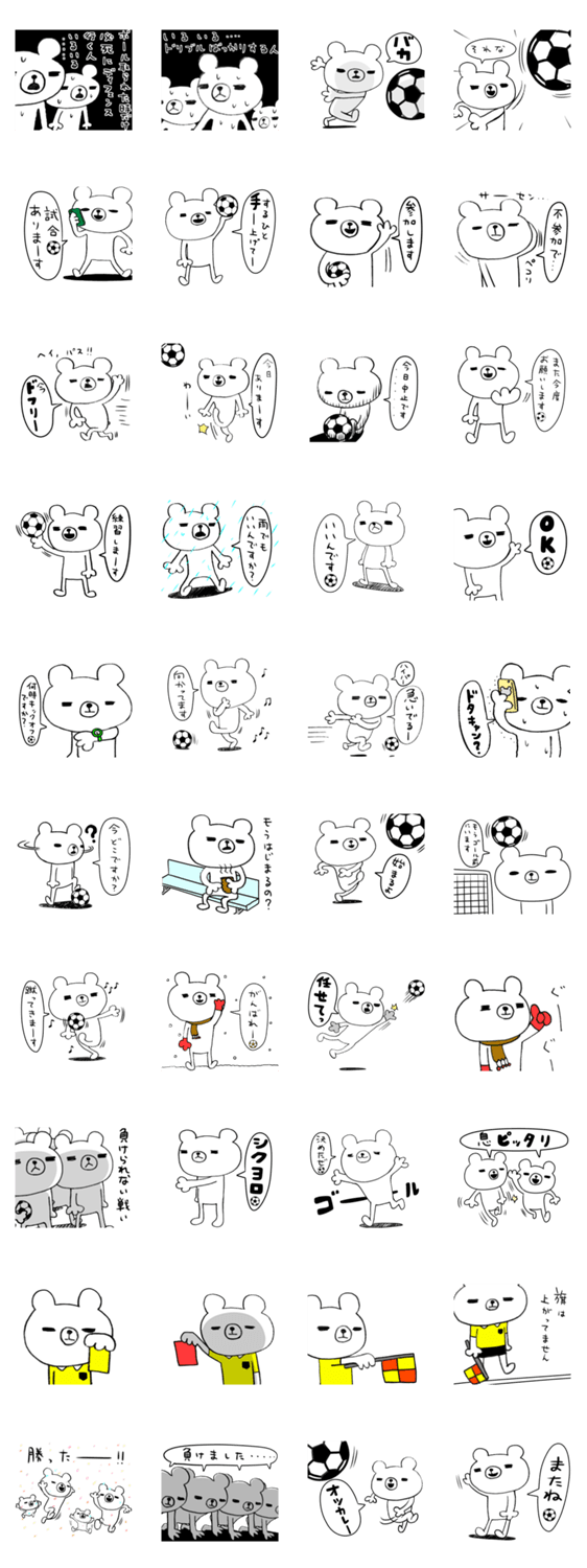サッカー好きなゆるいクマさんが使いやすいスタンプになりました。サッカーしてる人に使えるスタンプ多めです。日常会話やビジネスにもどうぞ。