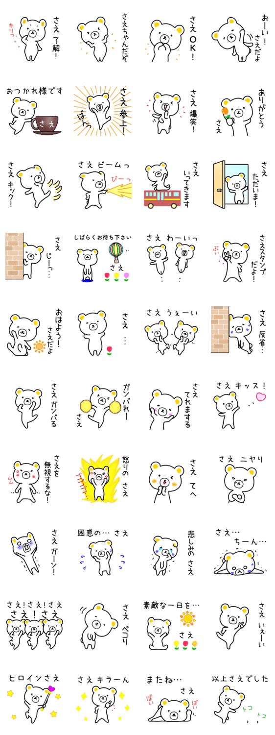 クマのサエさんスタンプです。冴子さん、佐恵子さん、小枝子さん、紗栄子さん、まだまだ沢山のサエさんへ。宜しければ使ってみて下さい。よろしくお願いします。