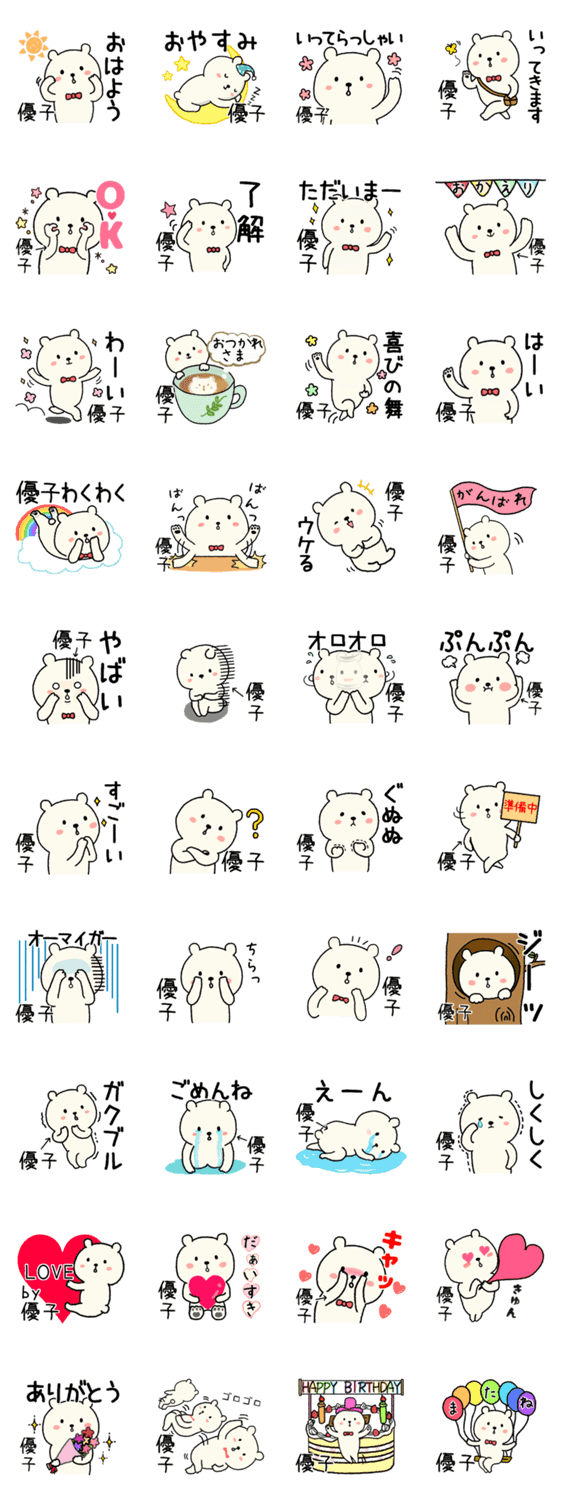 優子(ゆうこ)さんの漢字名前スタンプです。友達や家族で毎日使える。