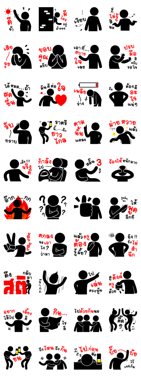 | スタンプ説明 | A set of stickers with silhouette pattern. They are no face but variety in actions representing their feelings. |