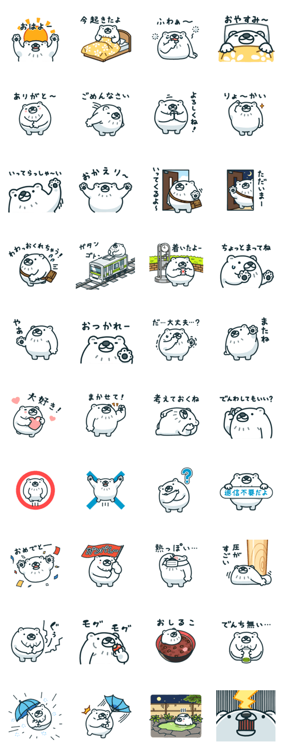 白玉のようにモチモチまるいシロクマの日常スタンプです。