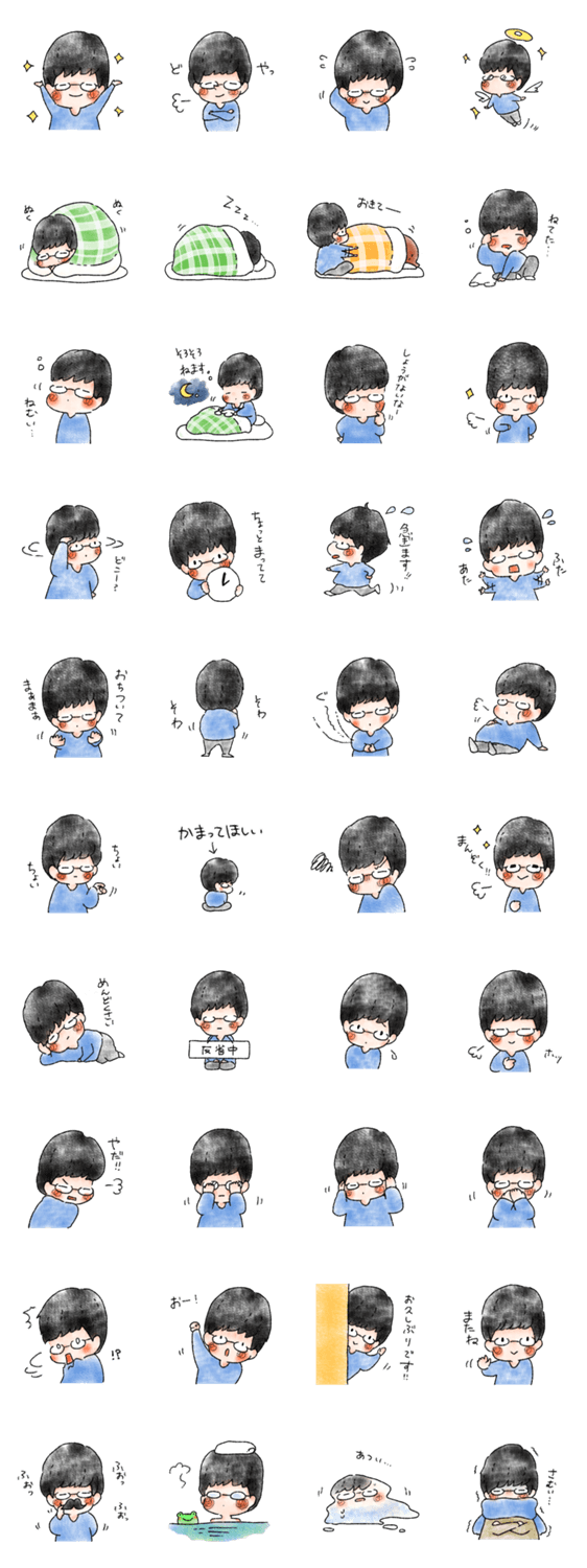 おはなしに出てくる男の子のスタンプ第二段です。毎日の会話がもっと楽しくなりますように。