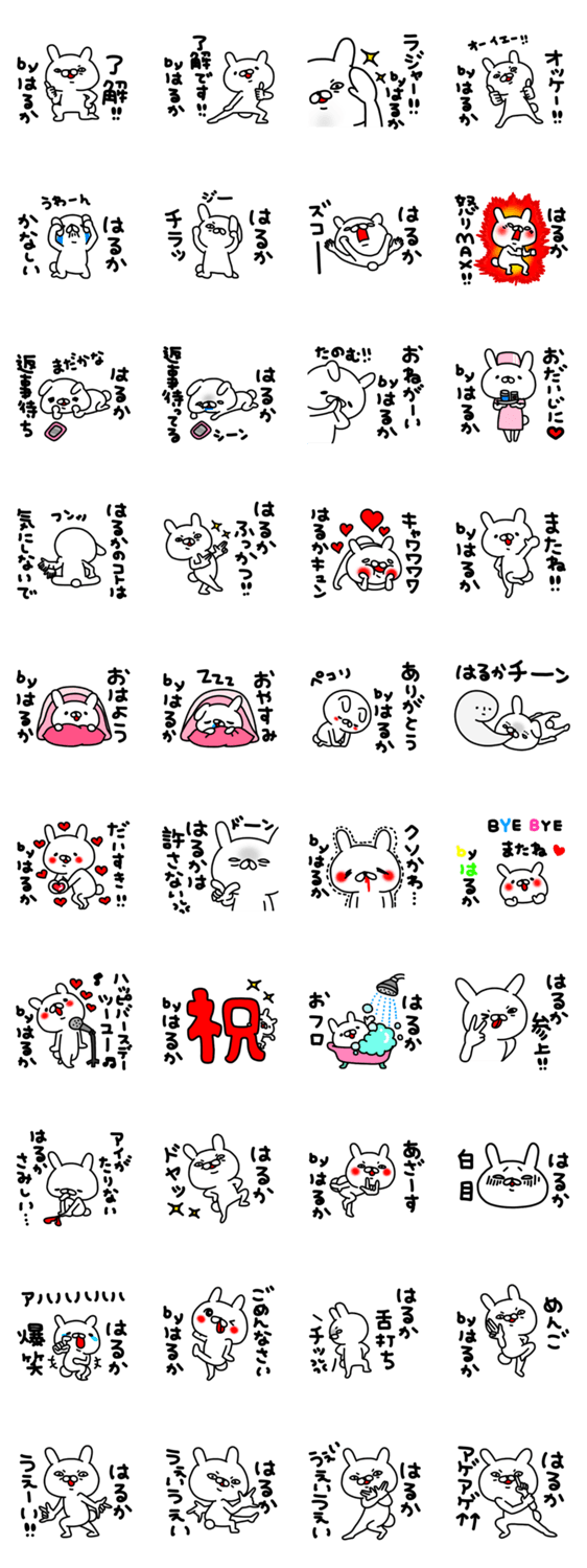 遥香・晴花・春香・春日。全国の「ハルカ」ちゃん専用の名前スタンプです。デカ文字&日常会話の基本セット。(ちょっぴりうざいうさぎ)