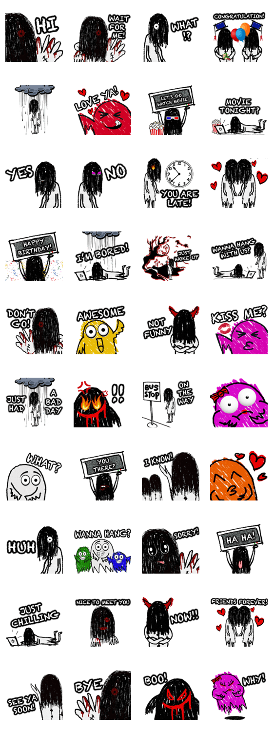 | スタンプ説明 | SKETCHY GHOST is ready to possess your daily life! Send our sticker to your friends, family, lovers and scare them to death with these creepily cute ghosts! |